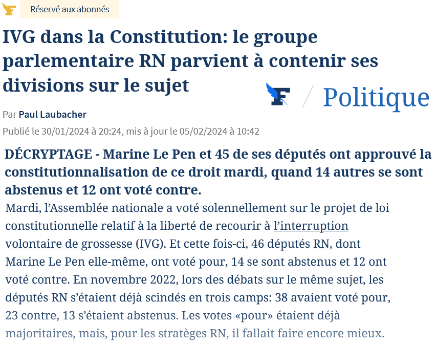 [ SOURCE : Mediapart, “Entre homophobie et façade gay-friendly, le double jeu du RN”, 14 janvier 2024 ]