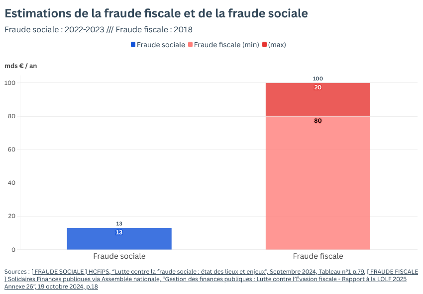 Déjà, un fait qui nous a fait bondir de notre chaise. En 2025, l’Etat ne produit toujours pas d’enquête pour estimer la fraude fiscale, alors qu’on le fait depuis 15 ans pour la fraude sociale.
