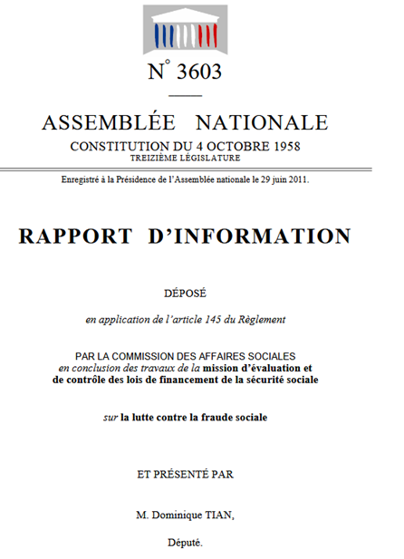 Il passe alors par un rapport parlementaire sur “la lutte contre la fraude sociale” rédigé par le député sarkozyste des Bouches du Rhône, Dominique Tian.