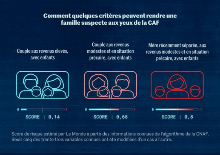 Le Monde a documenté qu’une mère récemment séparée avec des revenus modestes a un “score de suspicion” presque 6 fois plus grand qu’un couple avec enfants aux revenus élevés.