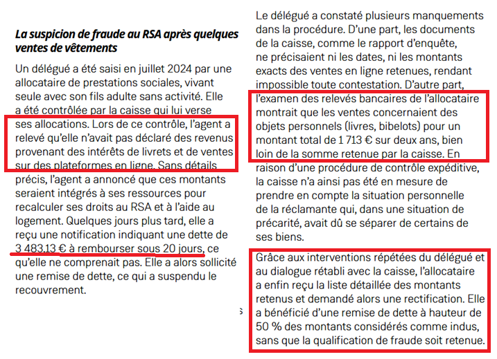 Le Défenseur des droits est intervenu, et il s’est rendu compte que la somme en question était 2 fois inférieure à celle retenue par la CAF ! En 2 ans, elle avait vendu 1713 € de livres et d’objets sur Leboncoin.