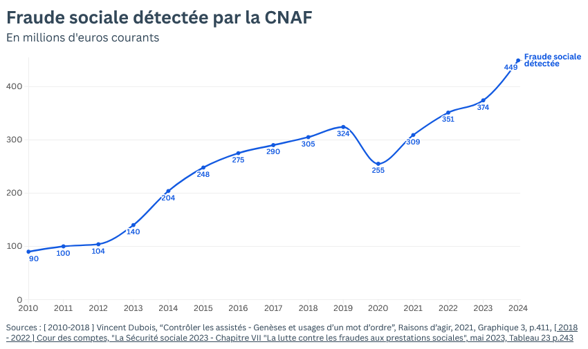 Et force est de constater que financièrement, ça marche. Entre le développement du contrôle algorithmique, et cette politique de tolérance zéro, les montants de fraude détectés par la CAF ont explosé. Ils ont été multipliés par 5 entre 2010 et 2024.