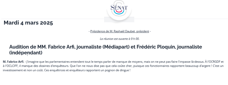 [ SOURCE : Sénat, “Commission d’enquête sur la délinquance financière – Audition de Fabrice Arfi”, 4 mars 2025, 66ème minute ]