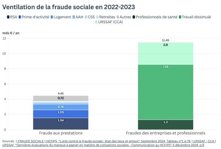 [ SOURCE : HCFiPS, “Lutte contre la fraude sociale : état des lieux et enjeux”, Septembre 2024, Tableau n°1 p.79 ]