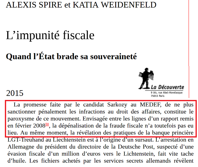 [ SOURCE : Spire & Weidenfeld, L’impunité fiscale. Quand l’État brade sa souveraineté, 2015, pp 37-38 ]